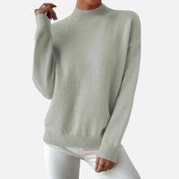 Velmonti Mode | Women’s Elegant Mock Neck Drop Shoulder Long Sleeve Pullover Sweater
