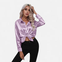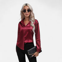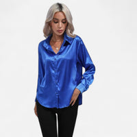 Velmonti Mode | Women’s Loose Fit Satin Long Sleeve Blouse